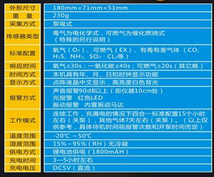 5、標(biāo)準(zhǔn)配置:氧氣≤30s;一氧化碳≤40s;可燃?xì)狻?/span>20s
